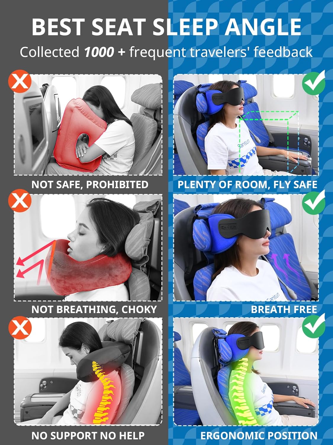 Experience unparalleled comfort during your travels with the SARISUN Travel Pillows for Airplanes. Designed specifically for long flights, this innovative airplane pillow features a unique head strap that keeps your head in place, preventing the dreaded bobblehead effect. The included eye mask ensures complete darkness, allowing you to drift off into a peaceful sleep, whether you’re on a plane, train, or car road trip.